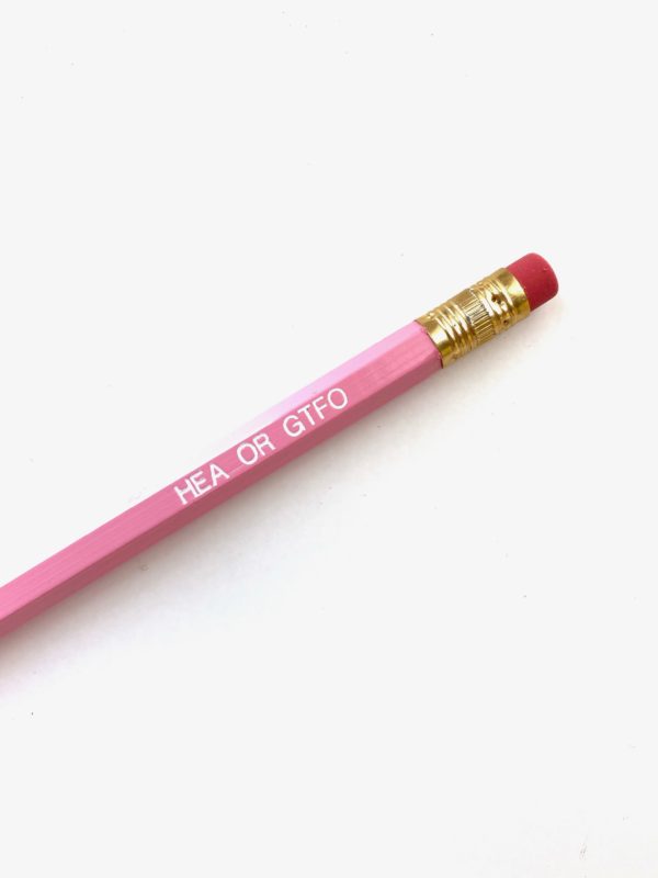 This pastel pink pencil is stamped with white foil and sold as a single.