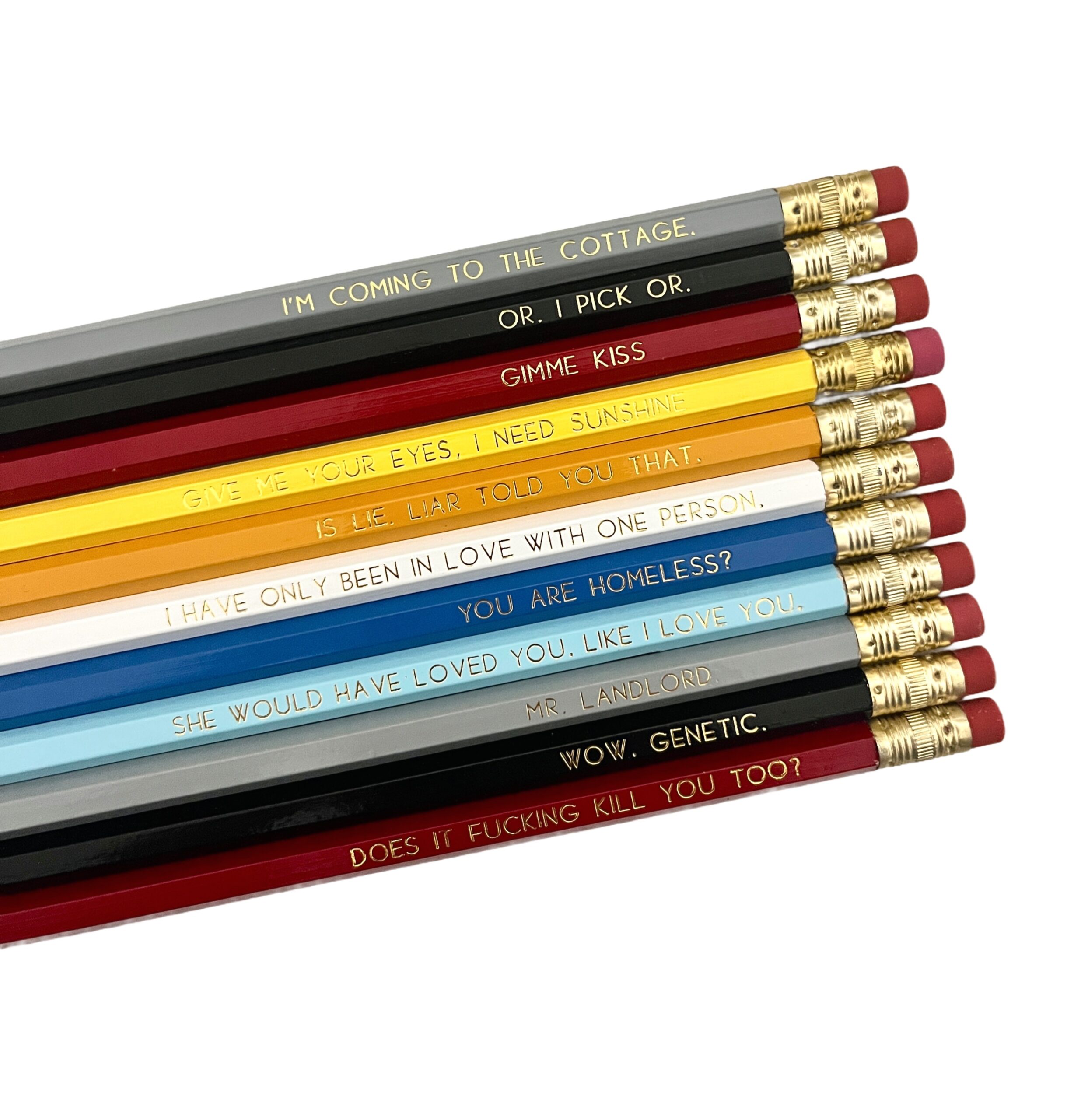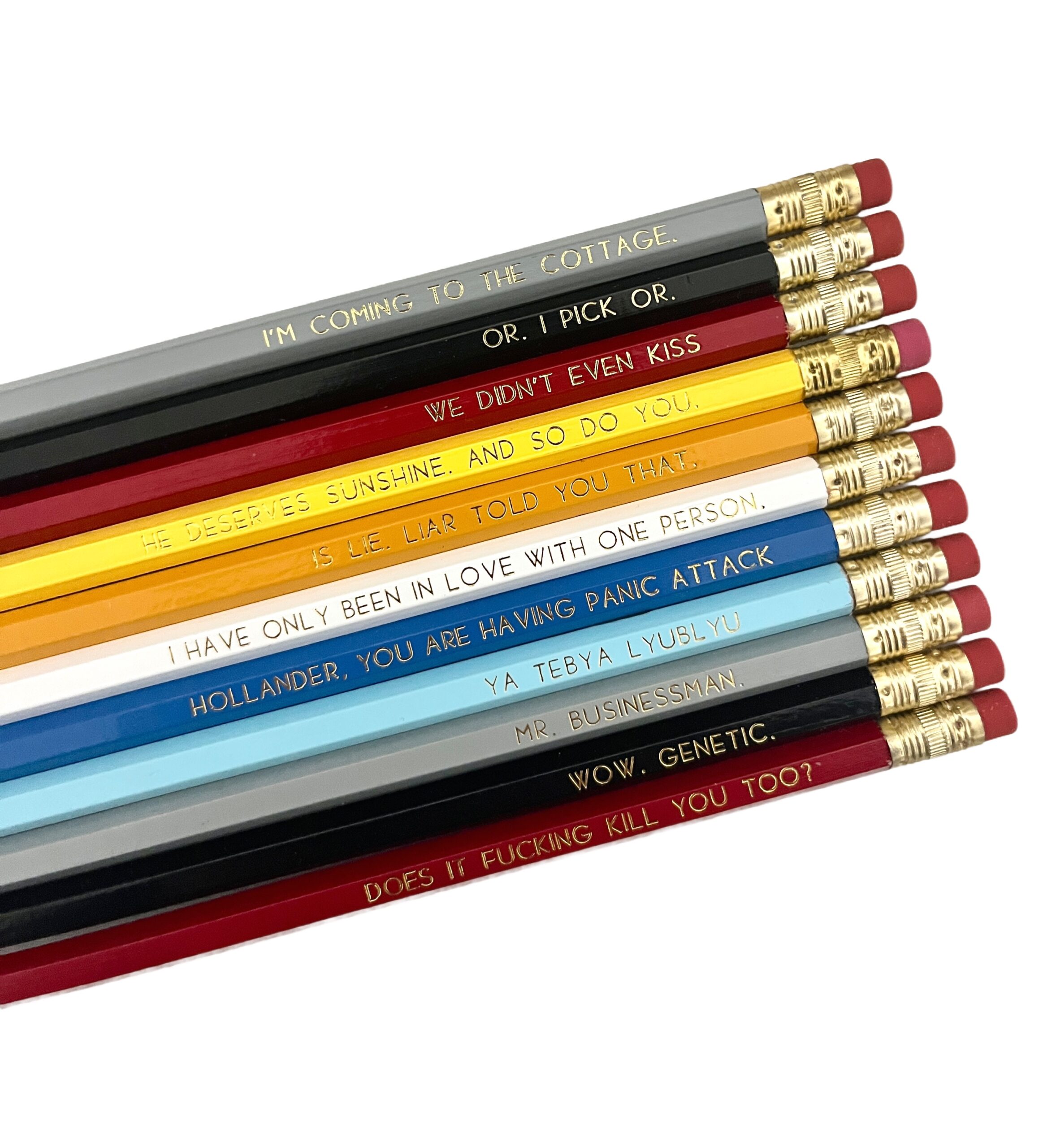 Part two: Heated Rivalry pencils featuring quotes from the Crave series.