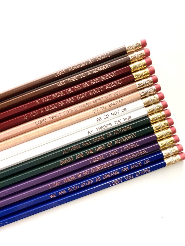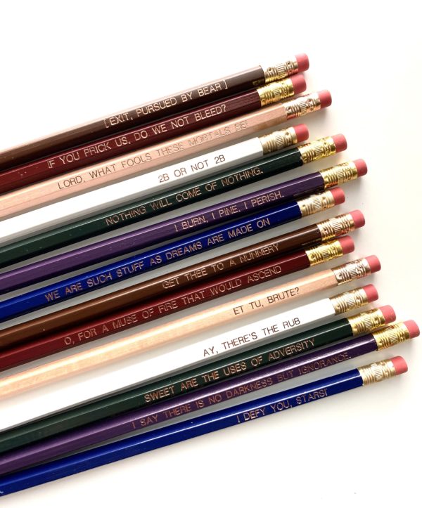 This nine-pencil set features jewel tones and a handful of the Bard’s classic lines stamped in rose gold foil.