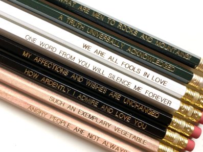 New pencils make me so happy and excited-like first day of school excited! All the possibilities just waiting to be written down. But now combine my love of romance novels with these great tropes AND new unsharpened pencils and I’m just dying! These are too beautiful to use! I have them all in a cup next to my computer and they make me smile. I may sharpen them one day but for now these are works of art in my mind. I’ve given these as gifts to so many people and all have been amazed by them. Thanks for sharing your talents.